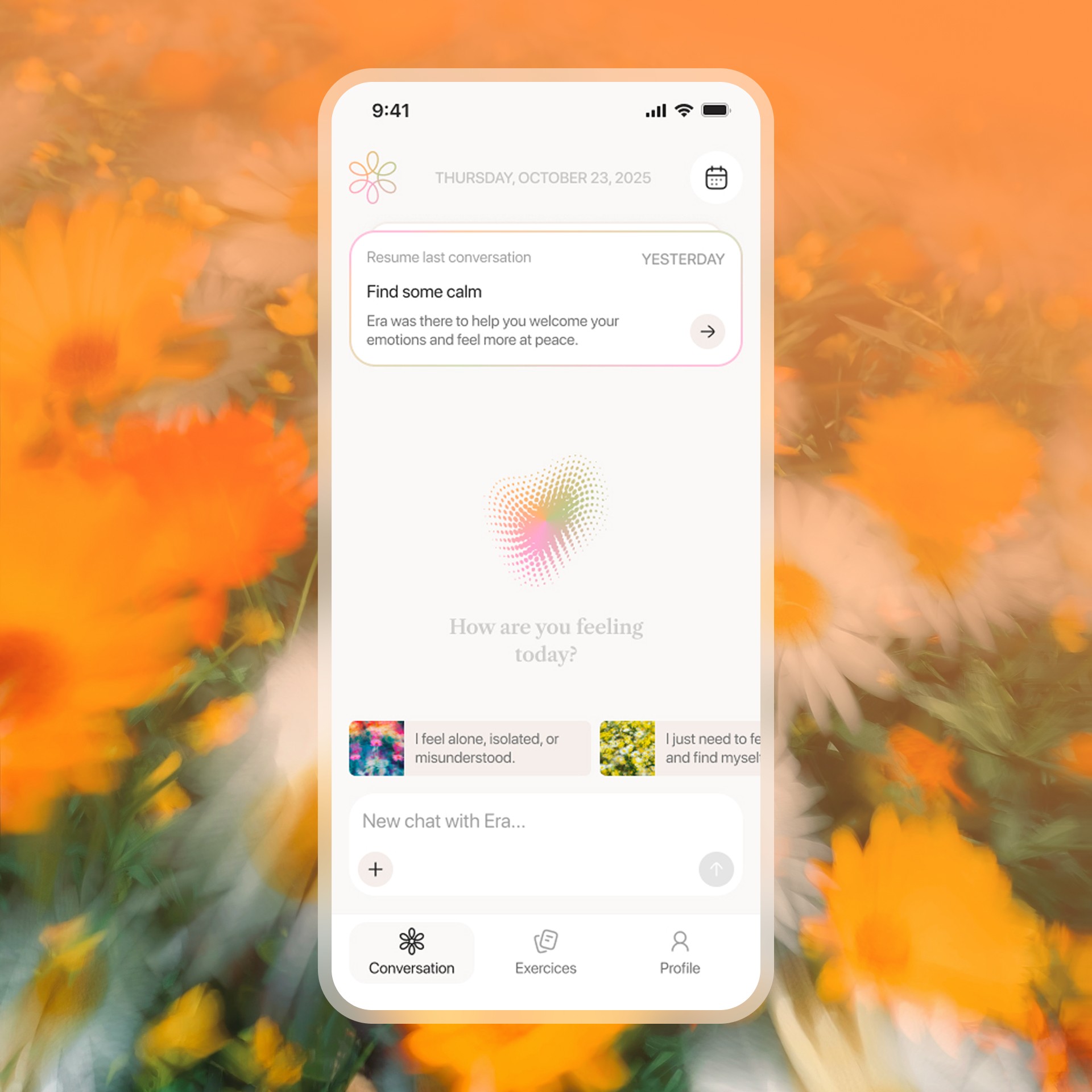 ERA is a chat app available 24/7 to help you understand what you’re feeling, calm your mind when needed, and find clarity. You can come and talk whenever you need, at your own pace, with no pressure or judgment.